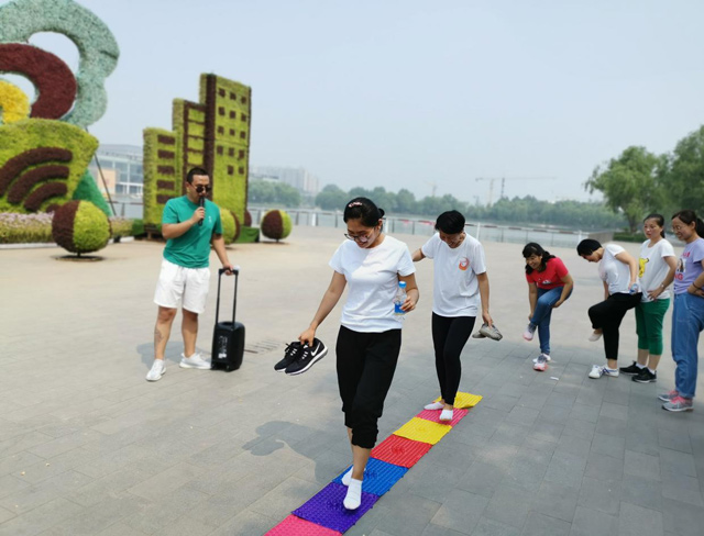 【翔悅大家庭】 七月盛夏,瓦藍(lán)瓦藍(lán)的天空沒有一絲云彩,火熱的太陽炙烤著大地,熱的湖里的魚不敢露出水面,鳥兒也不敢飛出樹林,就在這寂靜的時刻,廊坊市文化藝術(shù)中心迎來了一群80后90后的爽朗的笑聲、歌聲、加油聲...... 2019年7月13日清晨,公司全體人員齊聚廊坊市文化藝術(shù)中心公園,身著運動衣運動鞋的我們已經(jīng)迫不及待的準(zhǔn)備開始活動啦!